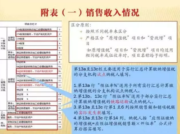 增值税一般纳税人申报流程 一般纳税人在征期内进行申报,申报具体流程为: (一)抄报税:纳税人在征期内登陆开票软件抄税,并通过网上抄报或办税厅抄报,向税务机关上传上月开票数据。 (二)纳税申报:纳税人登陆网上申报软件进行网上申报。网上申报成功并通过税银联网实时扣缴税款。 (三)清零解锁:申报成功后,纳税人返回开票系统对税控设备进行清零解锁。 提示:一般纳税人无税控设备的只需进行第二步申报操作,无需进行第一和第三步操作。 2 增值税一般纳税人申报表及其附列资料填写步骤 增值税一般纳税人申报比较复杂,其中增值税主表、附表一销项、附表二进项、附表四抵减、附表五不动产抵扣都是必填表,不管有无数据,都要点击打开相应报表填写保存。 从今年2月1号开始,许多一般纳税人企业的会计可能已经发现,下表中被红线划掉的固定资产(不含不动产)进项税额抵扣情况表和本期抵扣进项税额明细表已经没有了。 我们需要将这些按照填写顺序进行填写 步骤一、 填写附表(一):销售收入情况。部分栏次对纯货物劳务类纳税人开放;部分栏次对纯服务、不动产、无形资产类纳税人开放;兼营纳税人相关行次都会放开。第11、12列的数据与附表三差额征税会勾稽。差额征税启用白名单管理,如果没有向主管税务所报送过,将无法填写差额征税栏次。 有差额扣除的,请填写附表(三):服务、不动产和无形资产扣除项目明细 此表无法直接填写,点击附表一12列服务、不动产和无形资产扣除项目本期实际扣除金额,会弹出填写框,在此框中填写数据,相关数据会带到附表三中相应的行次。如果没有差额征税,纳税人不应点击12栏,否则打开后无法关闭填写框,只能点击左上角退出此申报表。 步骤二、 填写附表二:本期进项税额明细。 请注意:增值税进项发票当月认证,当月抵扣,这里的当月指所属期。 第二行请按照认证或勾选的月汇总数据进行填写。海关进口增值税专用缴款书纳税人如实填写,会在申报比对时与海关稽核系统数据比对。 农产品收购发票或者销售发票这栏反映企业农产品进项,此栏是灰色的,数据来源于《农产品核定扣除增值税进项税额计算表(汇总表)》合计数。需要注意:当农产品那行税额为空时,附表二是保存不过的,灰色项无法手工填写,需要点击左上角“补零”按钮,即可通过保存。 代扣代缴税收缴款凭证这一栏网报是有控制的,不应填写此行的单位填写完保存时会报错,显示为红色字体,另外现在还增加了数据比对,预缴有错的也会报错,鼠标放在红色字体附近会出现错误具体提示。 网上申报增值税纳税申报表附列资料(二)(本期进项税额明细)第14-23栏次增加监控要大于等于零,不允许填写负数。所以如果有增值税进项税额以前转出,但现在需要转入的,请先在网上将其他数据填写正确,申报成功后,再携带正确的申报表及附表,税务证件,办税人身份证到办税服务厅前台修改申报。 注意:属于增值税失控发票快速反应机制的 ,应有稽查局出具的核查结论;属于其他情形的,应有管理所出具《风险应对情况表》。 有不动产分期抵扣项目的,填写附表(五): 注意不动产分期抵扣计算表第五列“本期转出的待抵扣不动产进项税额”增加监控要大于等于零0,不允许填写负数。 步骤三、填写附表四 税额抵减情况表 增值税税控系统专用设备费及技术维护费本期实际抵减税额,在主表23栏应纳税额减征额中要再次体现。 分支机构预征、建筑服务预征、销售不动产预征、出租不动产预征的本期实际抵减税额也应在主表28栏分次预缴中再次体现。 注意税控设备抵减,在附表四填写,减免税明细表也要填写。 步骤四、有享受减免税业务的填写增值税减免税申报明细表: 此表不是必填表,如不涉及,请不要点击进入。填写减免税信息时,需要先点击选择减免大类,再点击选择减免小类,进而填写数据。请您一定要根据业务具实填写减免税明细数据。 注意,有些减免税项目是必须向主管税务机关备案后才能填写的。 步骤五、附表填写完毕后才可以填写增值税一般纳税人主表,主表上相应的销项税额和进项税额来自于附表,自动带出不可修改。主表15行数据是取自出口退税系统出口退税部门审核后的免抵退应退税额,自动带出不可修改。企业即征即退的税额必须是通过即征即退栏计算而来的税款,因此在申报时一定注意不要填错栏次。 步骤六、四大行业营改增企业还需要填写营改增税负分析测算明细表 请按照相应的增值税税率和营业税税率可以根据带出的应税项目代码及名称来选择填写。纳税人兼营此次营改增四大行业的应税行为,应分项目填报《测算明细表》,即多项应税行为分行填报对应“应税项目代码及名称”及相关栏次数据。 纳税人同期发生相同应税行为,适用不同计税方法的,应将不同计税方法的销售额、差额扣除额等数据分行填报《测算明细表》。纳税人享受增值税差额征税政策且发生差额扣除额的,才能按实际扣除额填报第4列“服务、不动产和无形资产扣除项目本期实际扣除金额”。 纳税人当期发生的应税项目,按国家统一的原营业税政策规定享受差额扣除政策的,可以填报对应行次第9 列“本期发生额”。如果有差额项目,11列也需要填写差额,与第4列保持一致。 3 一般纳税人收入填报注意事项 (1)一般纳税人开具增值税专用发票