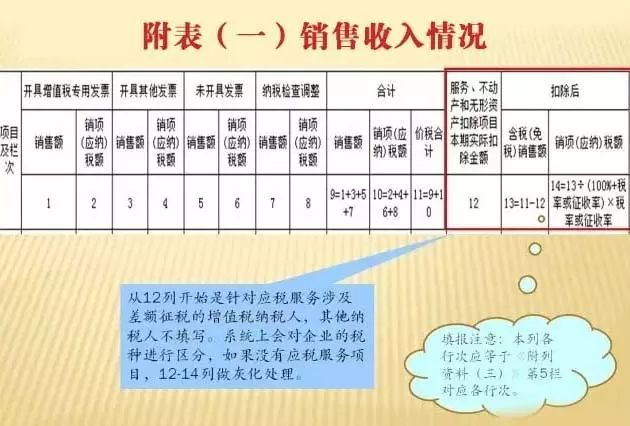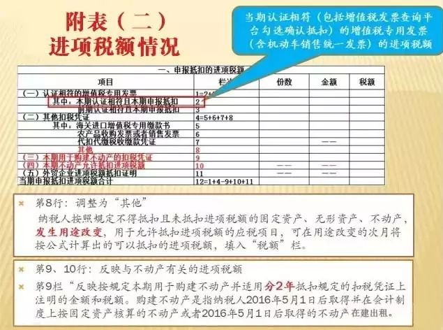 增值税一般纳税人申报流程 一般纳税人在征期内进行申报,申报具体流程为: (一)抄报税:纳税人在征期内登陆开票软件抄税,并通过网上抄报或办税厅抄报,向税务机关上传上月开票数据。 (二)纳税申报:纳税人登陆网上申报软件进行网上申报。网上申报成功并通过税银联网实时扣缴税款。 (三)清零解锁:申报成功后,纳税人返回开票系统对税控设备进行清零解锁。 提示:一般纳税人无税控设备的只需进行第二步申报操作,无需进行第一和第三步操作。 2 增值税一般纳税人申报表及其附列资料填写步骤 增值税一般纳税人申报比较复杂,其中增值税主表、附表一销项、附表二进项、附表四抵减、附表五不动产抵扣都是必填表,不管有无数据,都要点击打开相应报表填写保存。 从今年2月1号开始,许多一般纳税人企业的会计可能已经发现,下表中被红线划掉的固定资产(不含不动产)进项税额抵扣情况表和本期抵扣进项税额明细表已经没有了。 我们需要将这些按照填写顺序进行填写 步骤一、 填写附表(一):销售收入情况。部分栏次对纯货物劳务类纳税人开放;部分栏次对纯服务、不动产、无形资产类纳税人开放;兼营纳税人相关行次都会放开。第11、12列的数据与附表三差额征税会勾稽。差额征税启用白名单管理,如果没有向主管税务所报送过,将无法填写差额征税栏次。 有差额扣除的,请填写附表(三):服务、不动产和无形资产扣除项目明细 此表无法直接填写,点击附表一12列服务、不动产和无形资产扣除项目本期实际扣除金额,会弹出填写框,在此框中填写数据,相关数据会带到附表三中相应的行次。如果没有差额征税,纳税人不应点击12栏,否则打开后无法关闭填写框,只能点击左上角退出此申报表。 步骤二、 填写附表二:本期进项税额明细。 请注意:增值税进项发票当月认证,当月抵扣,这里的当月指所属期。 第二行请按照认证或勾选的月汇总数据进行填写。海关进口增值税专用缴款书纳税人如实填写,会在申报比对时与海关稽核系统数据比对。 农产品收购发票或者销售发票这栏反映企业农产品进项,此栏是灰色的,数据来源于《农产品核定扣除增值税进项税额计算表(汇总表)》合计数。需要注意:当农产品那行税额为空时,附表二是保存不过的,灰色项无法手工填写,需要点击左上角“补零”按钮,即可通过保存。 代扣代缴税收缴款凭证这一栏网报是有控制的,不应填写此行的单位填写完保存时会报错,显示为红色字体,另外现在还增加了数据比对,预缴有错的也会报错,鼠标放在红色字体附近会出现错误具体提示。 网上申报增值税纳税申报表附列资料(二)(本期进项税额明细)第14-23栏次增加监控要大于等于零,不允许填写负数。所以如果有增值税进项税额以前转出,但现在需要转入的,请先在网上将其他数据填写正确,申报成功后,再携带正确的申报表及附表,税务证件,办税人身份证到办税服务厅前台修改申报。 注意:属于增值税失控发票快速反应机制的 ,应有稽查局出具的核查结论;属于其他情形的,应有管理所出具《风险应对情况表》。 有不动产分期抵扣项目的,填写附表(五): 注意不动产分期抵扣计算表第五列“本期转出的待抵扣不动产进项税额”增加监控要大于等于零0,不允许填写负数。 步骤三、填写附表四 税额抵减情况表 增值税税控系统专用设备费及技术维护费本期实际抵减税额,在主表23栏应纳税额减征额中要再次体现。 分支机构预征、建筑服务预征、销售不动产预征、出租不动产预征的本期实际抵减税额也应在主表28栏分次预缴中再次体现。 注意税控设备抵减,在附表四填写,减免税明细表也要填写。 步骤四、有享受减免税业务的填写增值税减免税申报明细表: 此表不是必填表,如不涉及,请不要点击进入。填写减免税信息时,需要先点击选择减免大类,再点击选择减免小类,进而填写数据。请您一定要根据业务具实填写减免税明细数据。 注意,有些减免税项目是必须向主管税务机关备案后才能填写的。 步骤五、附表填写完毕后才可以填写增值税一般纳税人主表,主表上相应的销项税额和进项税额来自于附表,自动带出不可修改。主表15行数据是取自出口退税系统出口退税部门审核后的免抵退应退税额,自动带出不可修改。企业即征即退的税额必须是通过即征即退栏计算而来的税款,因此在申报时一定注意不要填错栏次。 步骤六、四大行业营改增企业还需要填写营改增税负分析测算明细表 请按照相应的增值税税率和营业税税率可以根据带出的应税项目代码及名称来选择填写。纳税人兼营此次营改增四大行业的应税行为,应分项目填报《测算明细表》,即多项应税行为分行填报对应“应税项目代码及名称”及相关栏次数据。 纳税人同期发生相同应税行为,适用不同计税方法的,应将不同计税方法的销售额、差额扣除额等数据分行填报《测算明细表》。纳税人享受增值税差额征税政策且发生差额扣除额的,才能按实际扣除额填报第4列“服务、不动产和无形资产扣除项目本期实际扣除金额”。 纳税人当期发生的应税项目,按国家统一的原营业税政策规定享受差额扣除政策的,可以填报对应行次第9 列“本期发生额”。如果有差额项目,11列也需要填写差额,与第4列保持一致。 3 一般纳税人收入填报注意事项 (1)一般纳税人开具增值税专用发